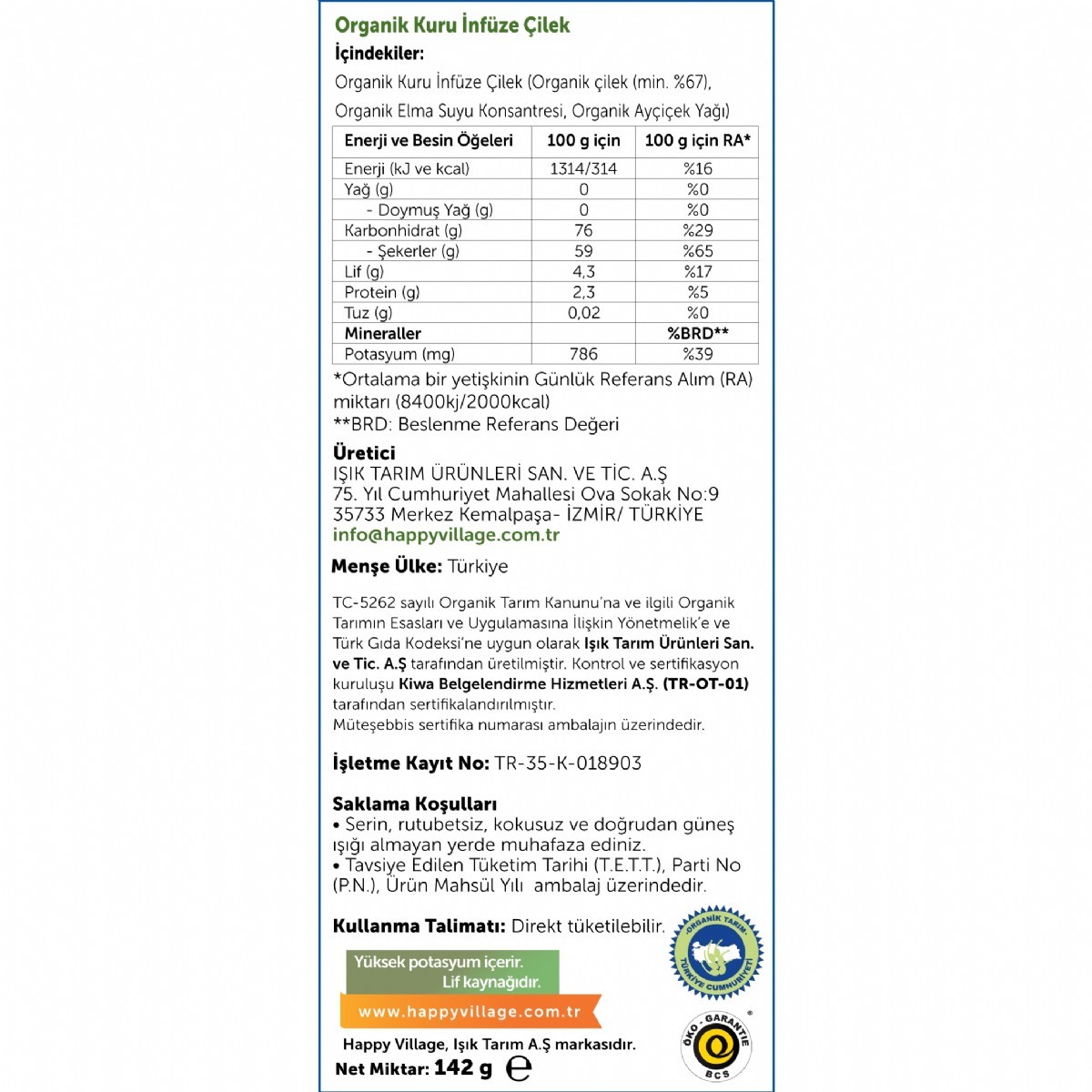 Rafine şeker ilavesiz, organik sertifikalı kuru çileğimiz , 142g'lık kilitli paketimizle her yerde yanınızda.